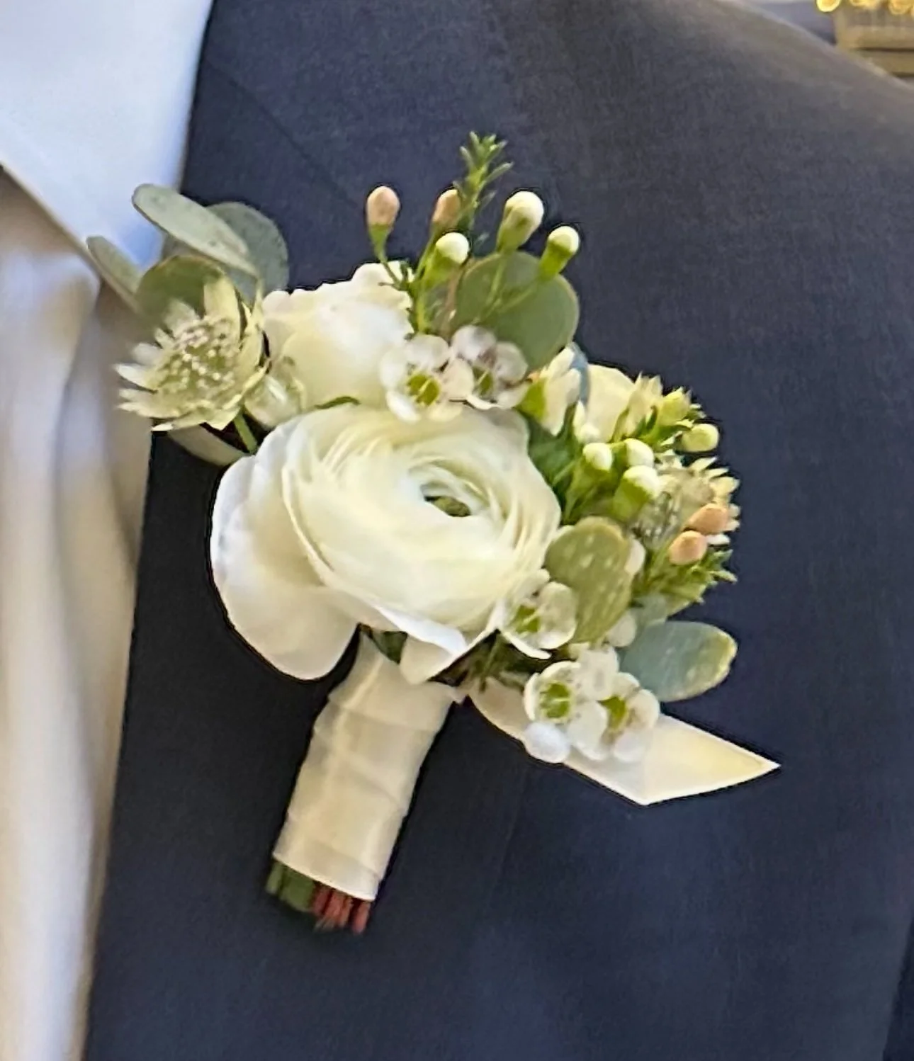 An upgraded boutonniere for that special day. The Grooms Boutonniere comes with 4-5 main flowers, accents, greens and filler. A perfect match to the Brides Bouquet.